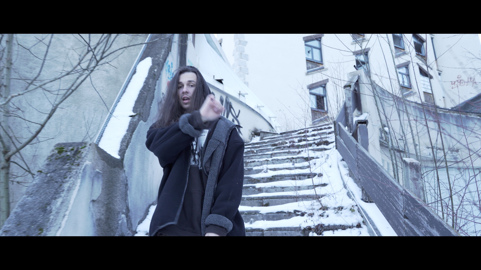 Clip vidéo en cours de montage de l'artiste Kyû 999 tourné dans un hôtel abandonné en plein hiver.